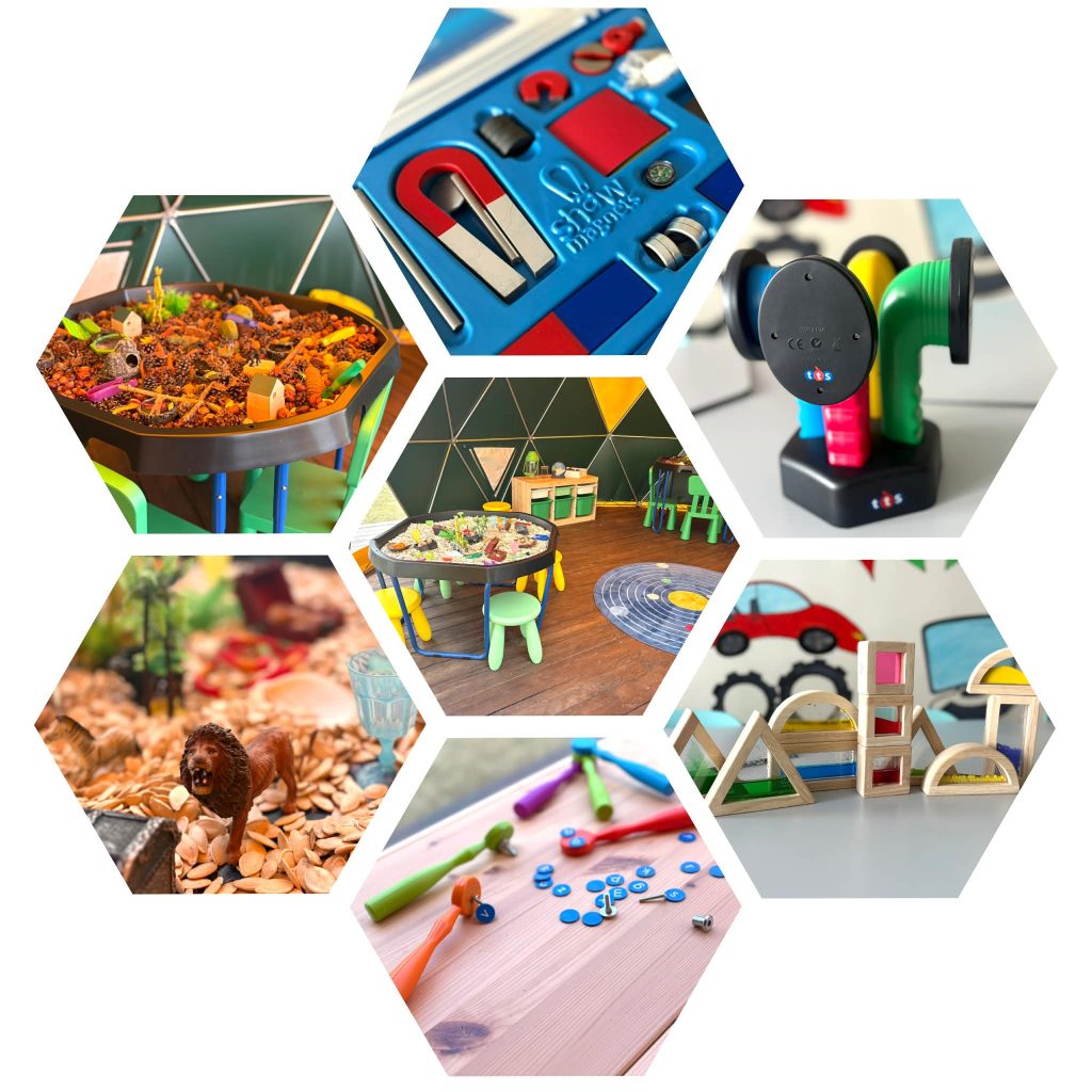STEM kupolo lauko klasė – tai moderni, inovatyvi edukacinė erdvė, sukurta vaikų tyrinėjimui, kūrybai ir poilsiui. Čia mokymasis vyksta per patirtį: vaikai gali eksperimentuoti su gamtinėmis medžiagomis, lavinti smulkiąją motoriką, spręsti problemas ir pažinti pasaulį per žaidimą. Ši aplinka skatina kūrybiškumą, smalsumą ir savarankiškumą, kartu suteikdama ramybės bei saugumo jausmą. Kupolo struktūra leidžia būti arti gamtos, bet tuo pačiu jaustis jaukiai ir apsaugotai, todėl tai ideali vieta tiek aktyvioms veikloms, tiek susikaupimui ar atsipalaidavimui. Erdvėje naudojamos įvairios edukacinės priemonės – metalo detektoriai, magnetų rinkiniai, sensoriniai stalai su natūraliomis medžiagomis (sėklomis, riešutais, smėliu), didinamieji stiklai, konstravimo elementai bei smulkiosios motorikos lavinimo įrankiai. Leidžia tyrinėti ir patirti gamtą, medžiagas, fizikos reiškinius bei supantį pasaulį per žaidimą ir praktinę veiklą.